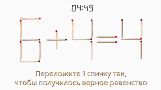 Задача 24. Переложите 1 спичку так, чтобы получилось верное равенство (6+4=4)