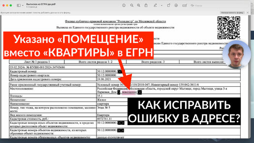 Выписка из ЕГРН с неправильным адресом