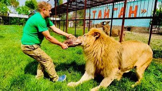 Кто СИЛЬНЕЕ и перетянет кусок мяса ОГРОМНЫЙ ЛЕВ или Человек-лев Олег Зубков?