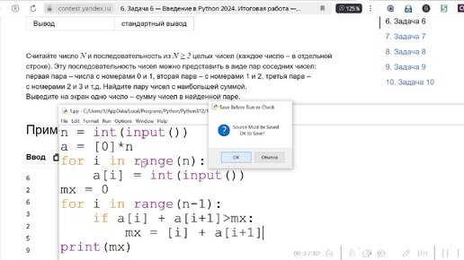 Разбор итоговой работы курса" Введение в Python для начинающих" - 10 классных задач на обработку числовых последовательностей. До 12 мая
