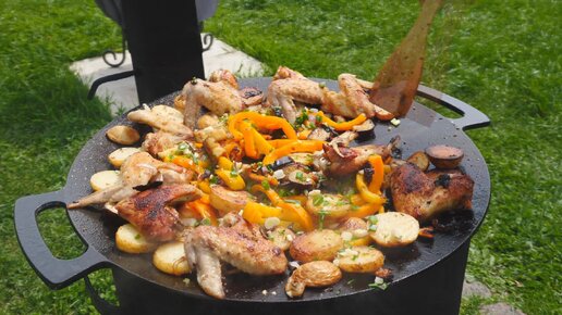 Садж из куриных крыльев с картофелем и овощами. Идеальный обед.