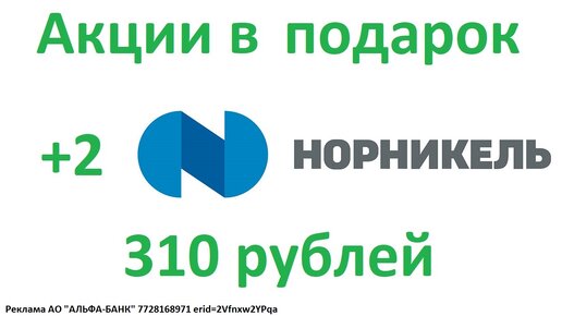 2 Подарочные акции Норильского Никеля Норникеля за покупки ценных бумаг от 1000 рублей - Инвестиции