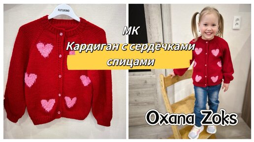 МК/Кардиган с сердечкам спицами/Детская кофточка для девочки/Вышивка по вязаному полотну/Oxana Zoks