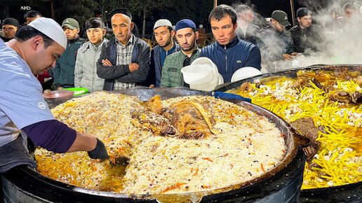 Около 1000 килограммов Узбекского национального плова | Популярная уличная еда