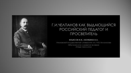 ЧЕЛПАНОВ Г.И. КАК ВЫДАЮЩИЙСЯ РОССИЙСКИЙ ПЕДАГОГ И ПРОСВЕТИТЕЛЬ