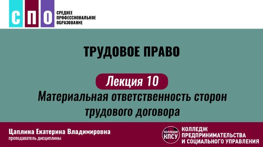 Лекция 10. ТП. Материальная ответственность сторон трудового договора