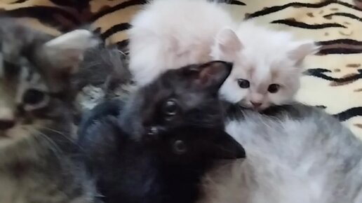 Две семьи объединились. Продолжение истории кошечки Нади и кошечки Маруси и их котят. Котятам Нади 62 дня, котятам Маруси 47.