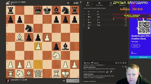 Королевский гамбит: гоняю чёрного короля по шахматной доске. Побил 2600-ка. Шахматы