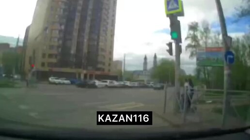 Иномарка чуть не сбила двух детей на самокате, переезжавших пешеходный переход Видео: Telegram-канал / «Казань на максималках»