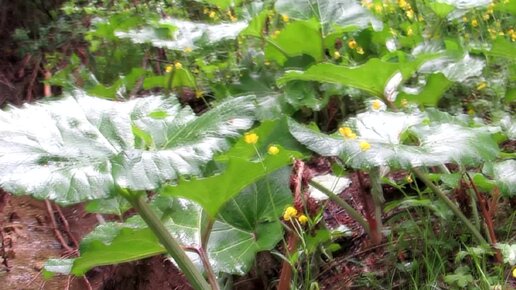 Дождь и заросли гигантского Белокопытника на реке Бурульча. Крым.