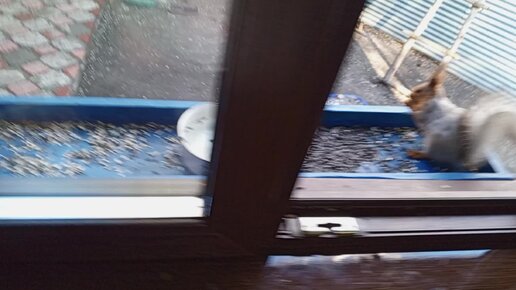Голодная белочка забежала в дом.