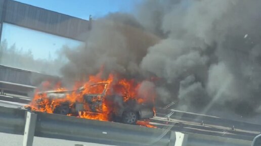 «Сгорел в пепел». «Поло» вспыхнул ярким пламенем на путепроводе в Скачках, не доехав до Красного Села