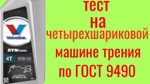Valvoline SYNpower 10w50 тест на четырёхшариковой машине трения по ГОСТ 9490 60 мин.
