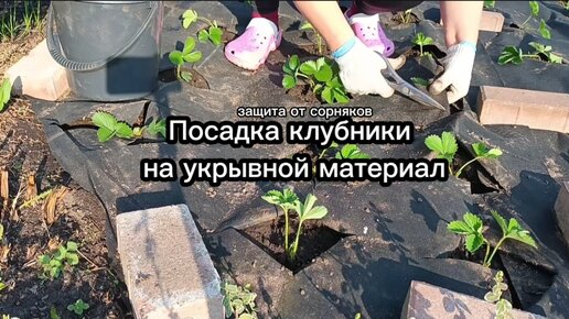 Посадка клубники на укрывной материал. Защита от сорняков. Мебельный степлер в саду. #посадкаклубники #укрывнойматериал #степлервсаду #защитаотсорняков