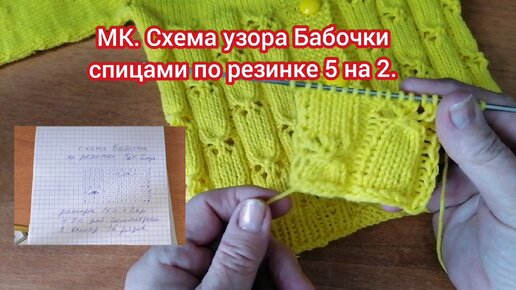 МК. Схема узора "Ажурные бабочки" по резинке 5лиц ×2изн спицами.Как я применила узор на детских жакете и сарафане. Просто, красиво.