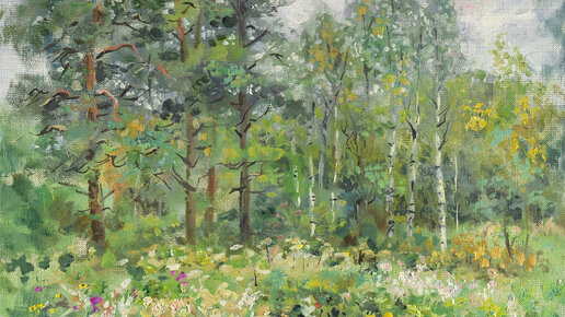 Картина лес летний пейзаж с соснами на холсте