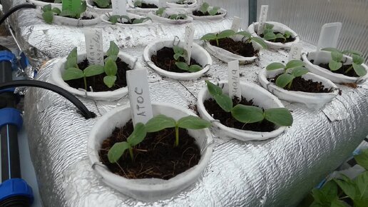 Репортаж из теплицы 29.04.2024. Огурцы на аквапотах дружно взошли, рассада растет, все в штатном режиме