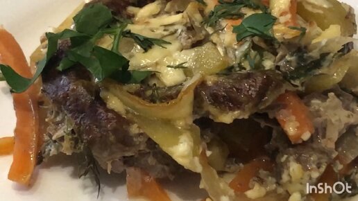Печень с картофелем и морковью в духовке