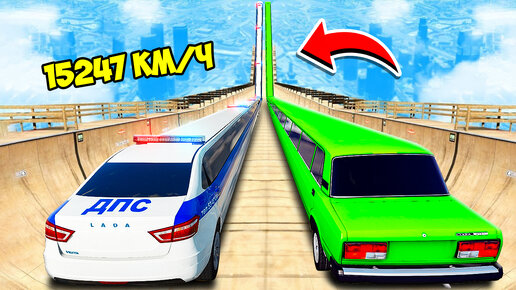 СПУСК БЕЗ ТОРМОЗОВ НА САМЫХ ДЛИННЫХ РУССКИХ ЛИМУЗИНАХ ПО ТРАМПЛИНУ 🌊 ГТА 5 МОДЫ МУРКА