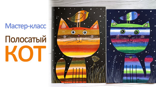 Мастер-класс "Полосатый кот"🐈. Смешанная техника.