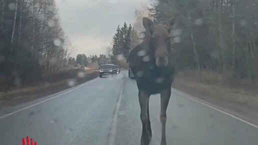 Огромный лось вышел на дорогу в Аргаяшском районе