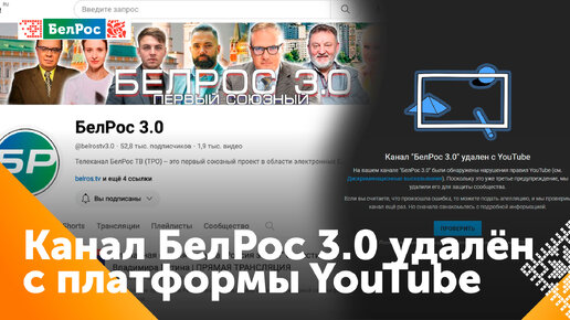YouTube в третий раз удалил страницу телеканала Союзного государства "БелРос 3.0"