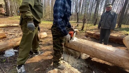 Первые венцы сруба. Как работать плотницкой чертой. Видео от наших покупателей.