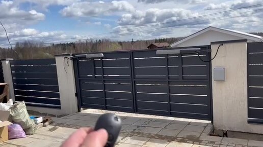 Распашные ворота Ранчо 200 мм с автоматикой, цвета Серый Графит в Солнечногорске, КП Тироль.