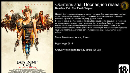 Обитель зла Последняя глава - трейлер 2016 FHD