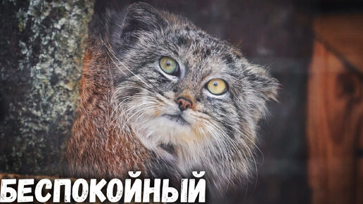 Манул Шу беспокойно бегает по вольеру. Ленинградский зоопарк