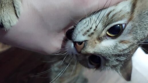 Кошка-подросток играет с рукой