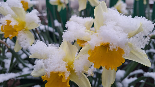 Встречает май в снегу мой сад