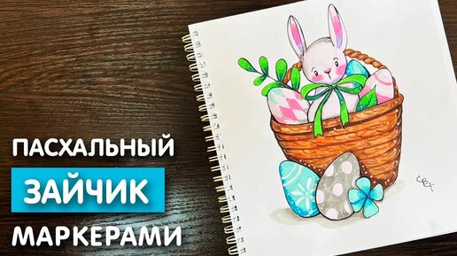 Рисунок скетч маркерами "Пасхальный заяц" для скетчбука | Срисовка картинки для начинающих