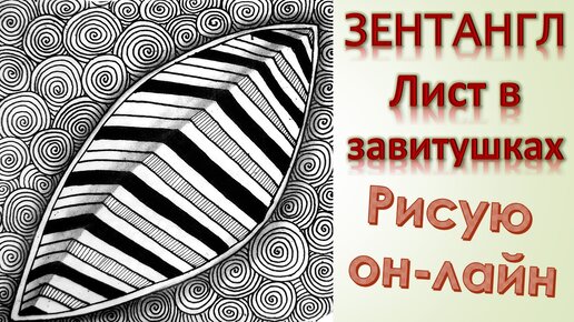 Зентангл Лист в завитушках