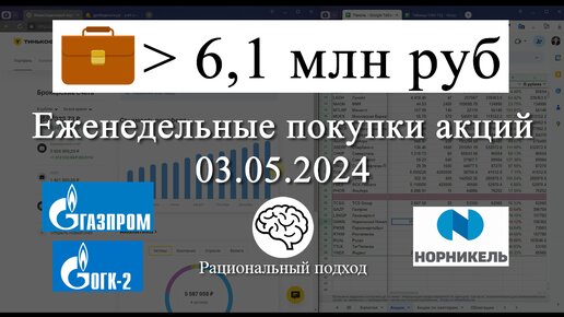 44. Еженедельные покупки акций и облигаций: Газпром, Норникель, ОГК-2 (03.05.2024)