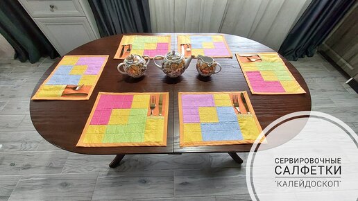 Праздничный комплект сервировочных салфеток "Калейдоскоп" с очень простым лоскутным узором. Пэчворк.