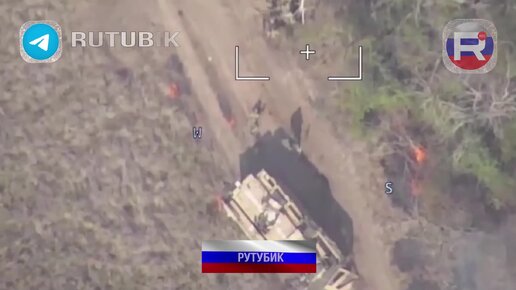 СВО новости | Попадание Ланцета в британский бронеавтомобиль Мастифф. Видно, как после прилета из него вылезает пострадавший личный состав