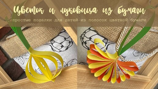 Цветок и луковица: простые поделки для детей из полосок цветной бумаги
