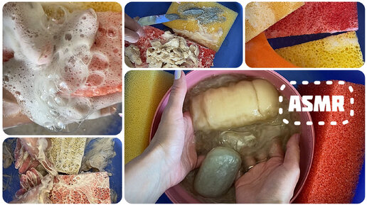 АСМР Пропитанное дегтярное мыло и губки.