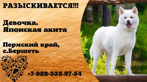 Пропала собака! Девочка, Японская акита. Пермский край, с.Бершеть