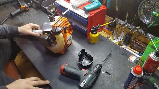 Бензокоса STIHL FS 55,ремонт и регулировка карбюратора,Глохнет при нажатии на газ