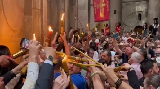 Благодатный огонь сошёл в Храме Гроба Господня в Иерусалиме