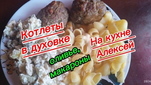 Котлеты в духовке, макароны, оливье. На кухне Алексей