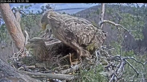 16.04.2024 Камычи. Чулман принёс сено, и оба за кем-то наблюдают