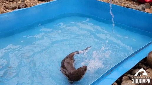 Выдру Маню не пугает резкое похолодание, она с удовольствием плещется в бассейне. А всё потому, что её мех – это и пуховик, и купальник.