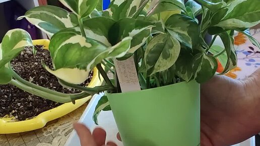 Пересадка калатеи Yellow Fusion и эпипремнума N-Joy.