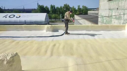 Сделано на Pusmak. Гидроизоляция кровли полимочевиной. По напыляемому ППУ. Защита от УФ мастикой.