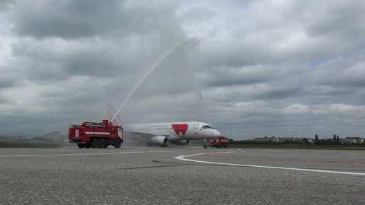 Водяная арка для "Суперджета": встреча первого рейса Казань - Нальчик