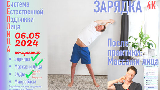 Зарядка Сеплица: лимфодренаж, растяжки, вращения - за 25 минут. После практики массаж лица