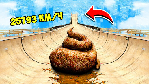 СПУСК БЕЗ ТОРМОЗОВ НА ГИГАНТСКОЙ КАКАШКЕ ПО ТРАМПЛИНУ 🌴 ГТА 5 МОДЫ РАЙЛЮХА